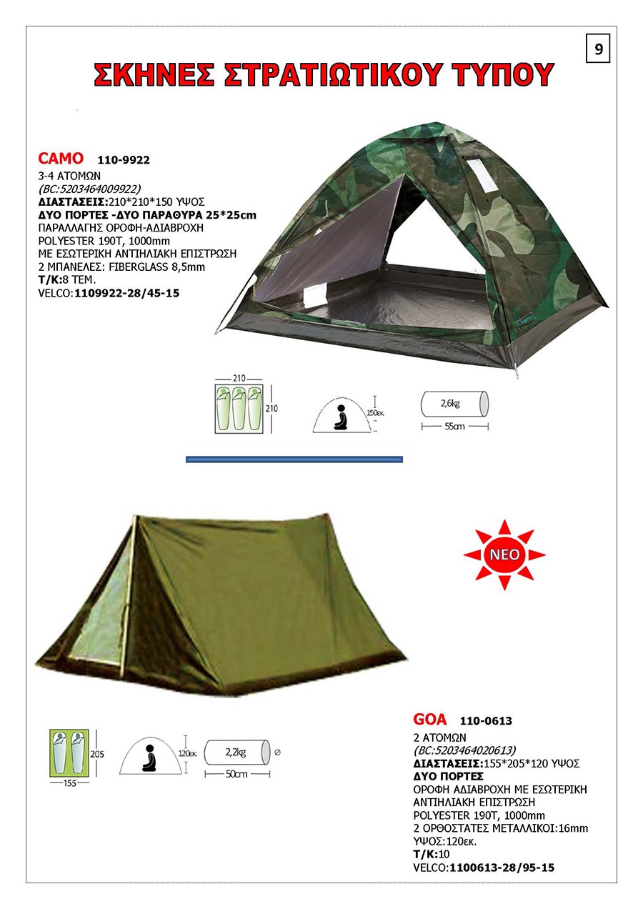 Είδη Camping Πληροφοριακά Στοιχεία Κατηγορία: Κήπος-Camping Σκηνές, σακίδια, υποστρώματα και ένα σορό άλλα είδη για να κάνετε τις διακοπές σας υπέροχες. email facebook twitter google+ linkedin pinterest Επόμενο